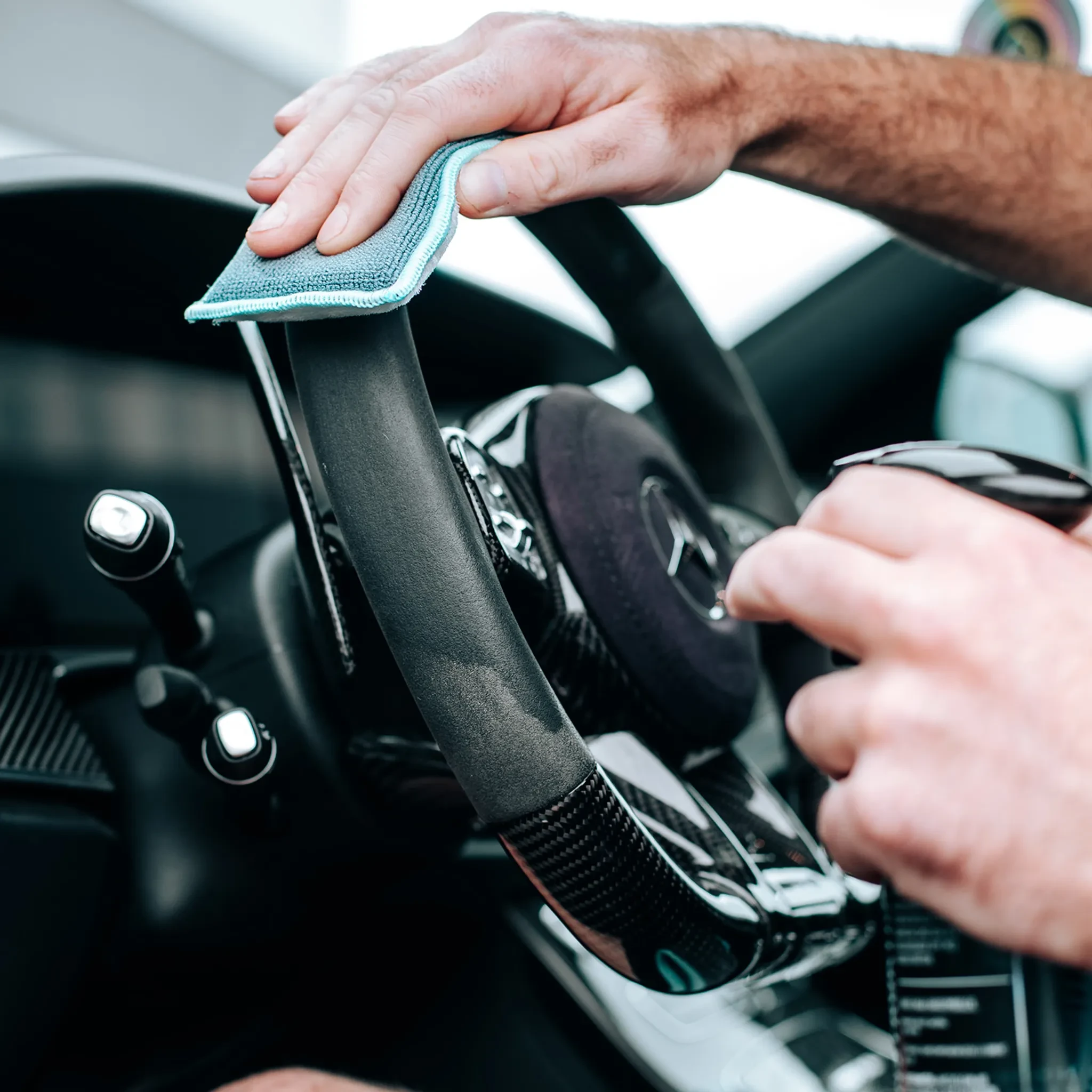 Synthetic suede application cloth. Used for applying our ceramic products. We usually use the cloth where the sponge or machine cannot reach, around mirrors, rims, etc. The cloth is intended as a consumable item. Dimensions: 10x10cm