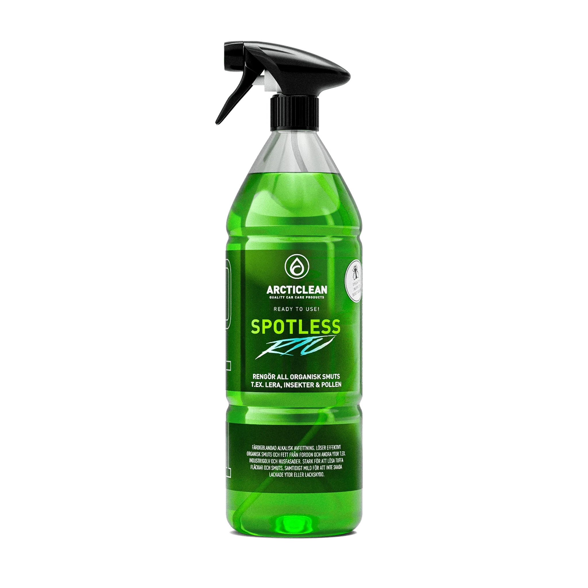 Spotless is intended to be used as a pre-wash. By using Spotless as the first step in the washing process, you can eliminate all loose organic dirt from your car before continuing with car shampoo and a washing glove. Removing the loose dirt layer reduces the risk of wash scratches and gives you a safer surface to work on.