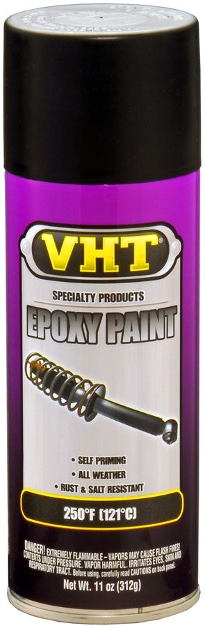VHT Epoxy is a one-step epoxy paint that does not require a primer and can be used directly on most materials. VHT Epoxy provides a surface that resembles oven-baked paint and is resistant to, among other things, fuel, chemicals, rust and road salt. Can be exposed to temperatures up to 121°C for short periods. Supplied in a 400ml can which is enough for about 1.1-1.3 m2.