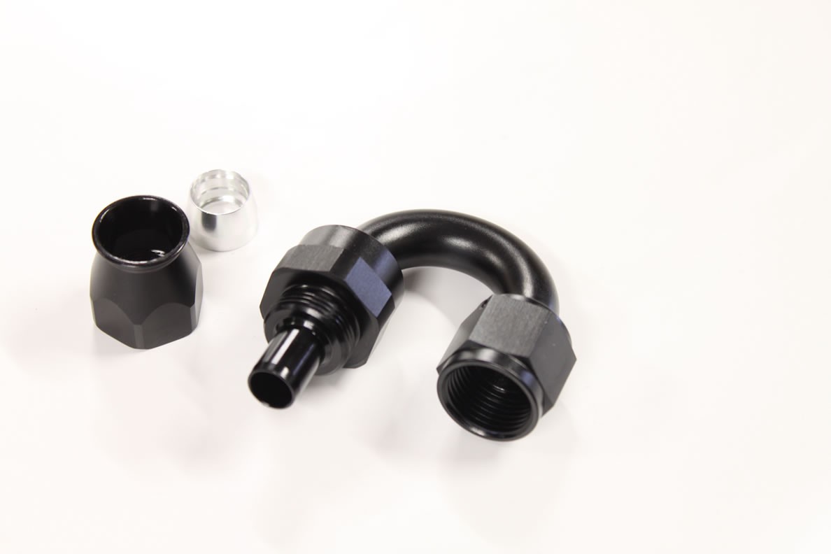 Black AN10 Fitting 120g, for PTFE hose H2M Import Black AN 10 90 degree coupling for PTFE hose. 175 kr