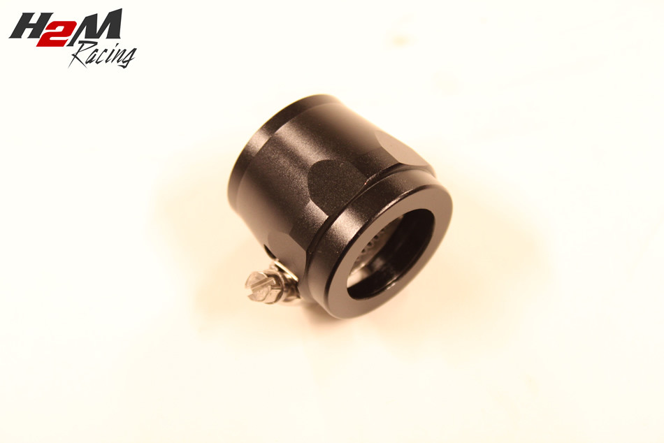Hose clamp with anodized aluminum housing. Black color. The hose clamp in these is made of stainless steel and is very strong. Looks great on your hoses, so that it looks like real AN connections! Hose size: AN12Max outer diameter of the hose: 25mm 1pc per