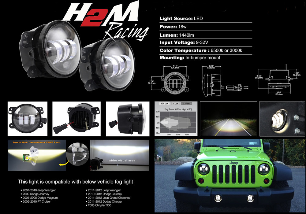 Fog lights LED ChromeJeep Wrangler etc
