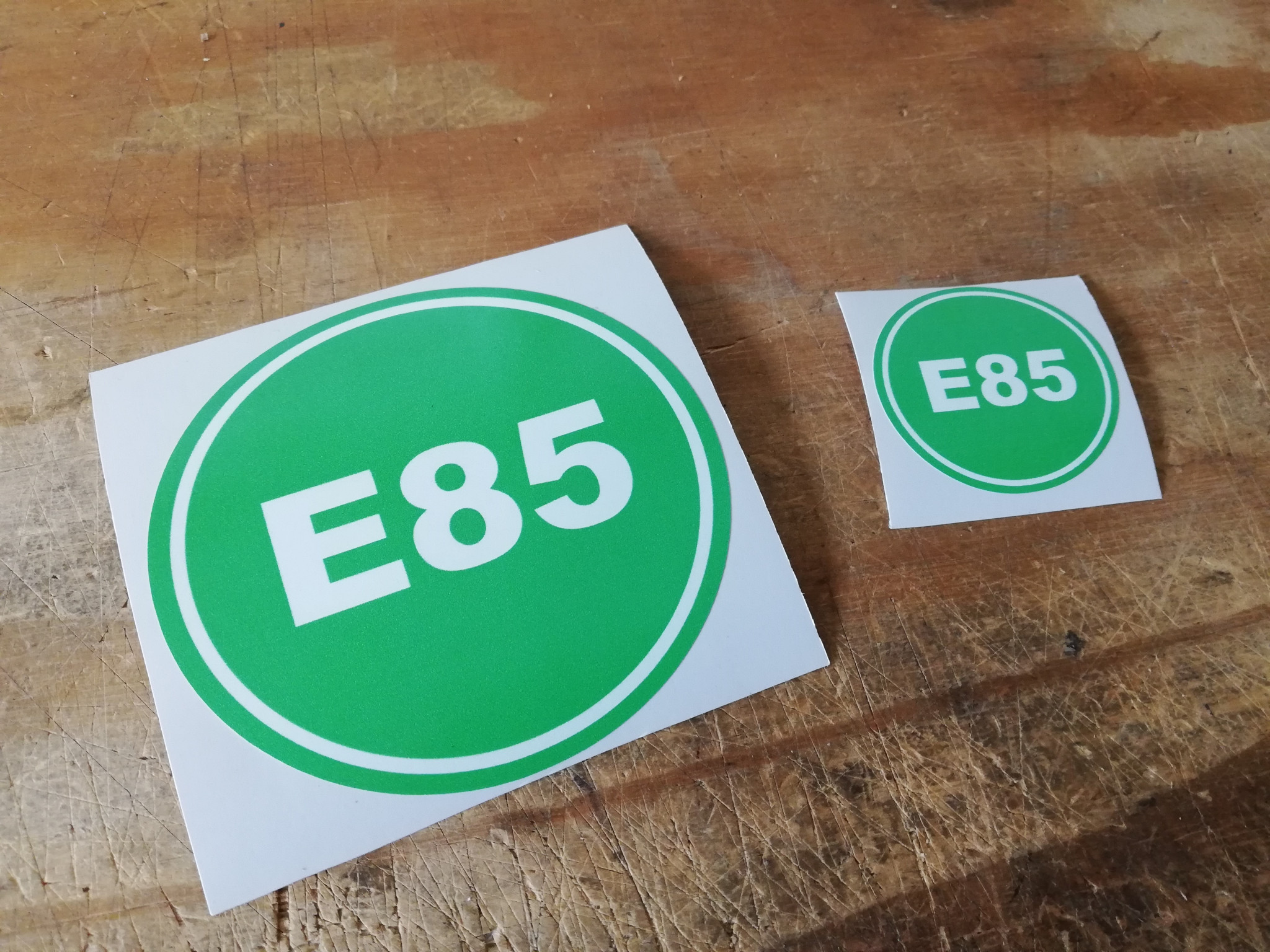 E85 sticker. Stick it on the fuel cap, window, etc. for those who want to show officials or the like that the car runs on alcohol. Or so you remember to fill up with the right fuel.