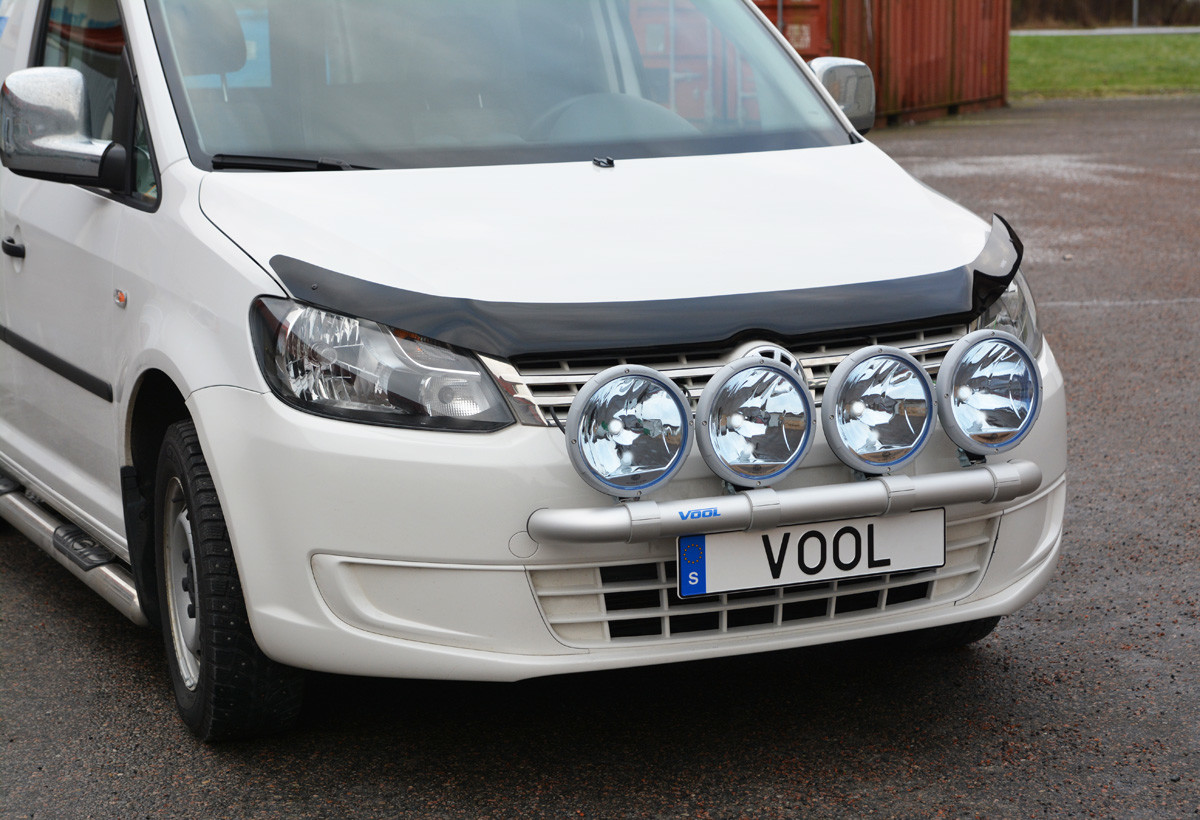 This wide Voolbar Alu extra light holder with removable brackets for extra lights can be mounted in several ways, for example in the front bumper in the car's crash beam using the included mounting kit. Voolbar Alu has brackets for the license plate that are moved forward during installation.