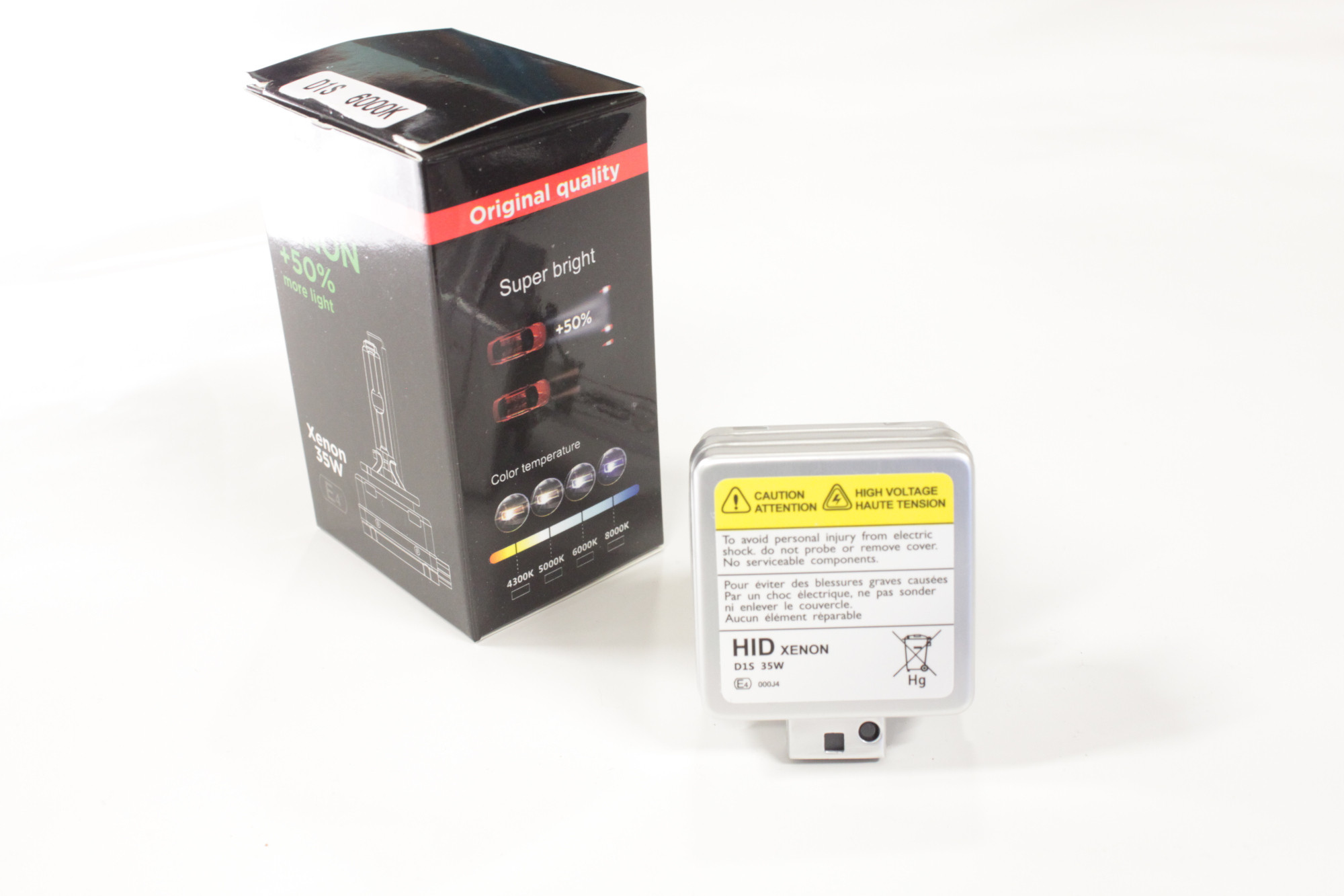 Spare part D1S 4300K, replaces original mounted 4300K lamps. D1S is installed in passenger cars, work lights, trucks etc. It is a square ignition module at the back of the lamp with a 3-pin connector Choose between 4300K (Original white) 6000K (Diamond whi