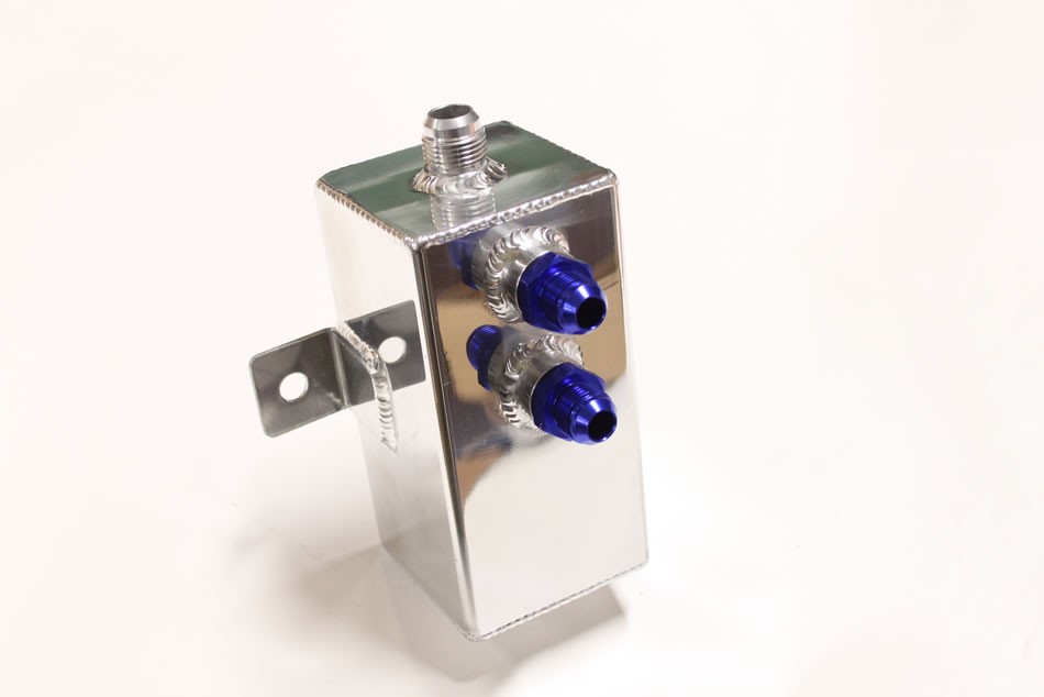 Catchtank1L (0.9L)/ Crankcase ventilation - Aluminum- Top connection AN10 - bottom plug in the bottom with magnet M12x1.5mm. - Two connections 3/4-16 UNF (AN8) - Tank dimensions: WxDxH 76x76x160 mm For hard trimming and turbo installations combined with …